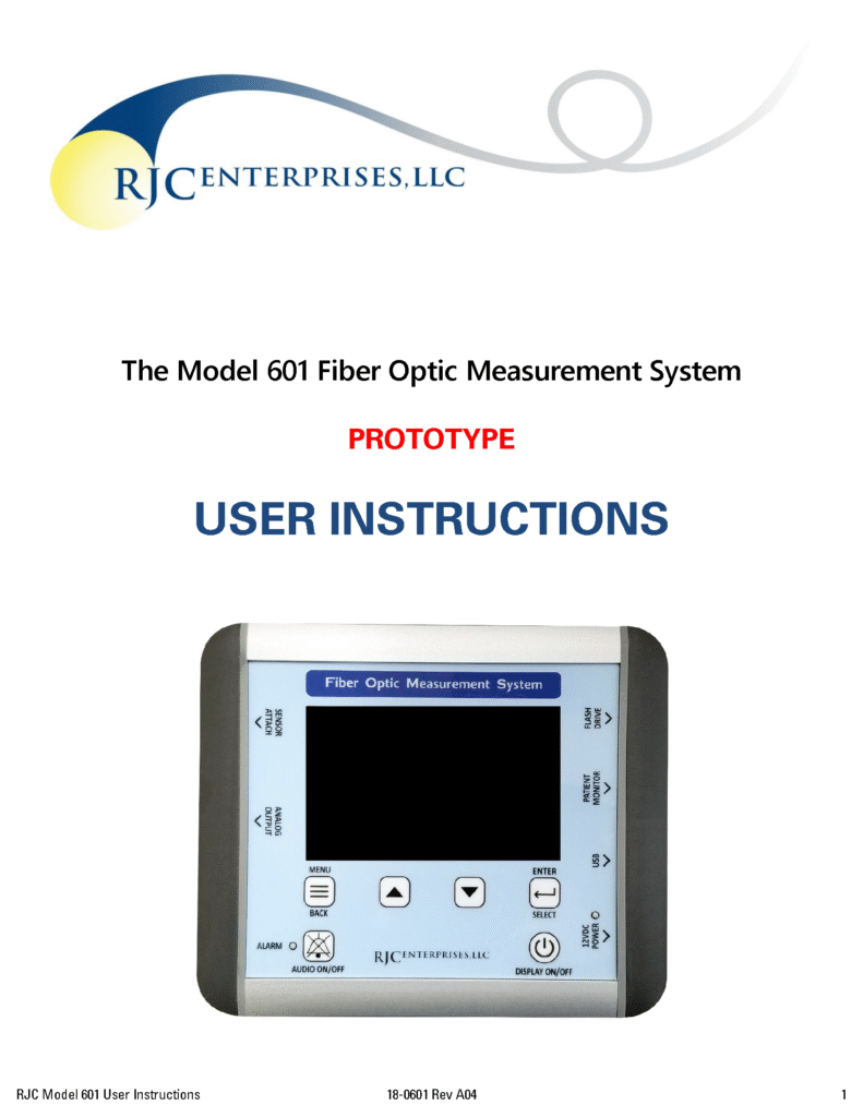 The Model 601 Fiber Optic Measurement Instrument (FOMI) contains a Model 500 FOMA and is used where the customer requires a stand alone instrument. The Model 601 contains a separate circuit board assembly that provides a power supply, graphic color display, alarm functions, and other related features. This FOMI has many applications, including product development support, laboratory studies, production support, and clinical measurements (the customer must first obtain regulatory approval).